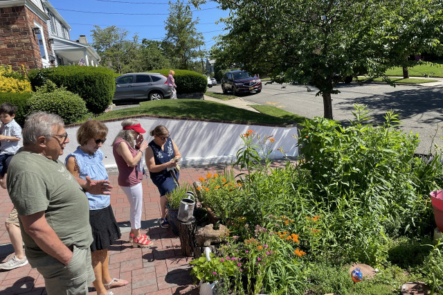 “Visitors to my garden will learn how to transition from a traditional to a sustainable garden requiring less watering and maintenance while using no fertilizers or pesticides. I found the pollinator garden design for my front yard on the ReWild Long Island website. Each year, I add a few more plants to attract birds, bees, and butterflies.”