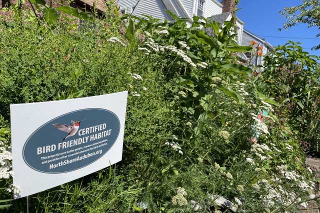 “As a long-time member of North Shore Audubon, I try to look at my garden with the eyes of a bird. Birds can’t resist a pretty yard with plenty of delicious native seeds and caterpillars, as well as places to hide and forage.”